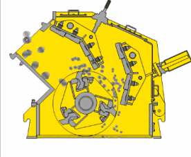 物料進(jìn)入破碎機(jī)后,先受到隨轉(zhuǎn)子高速旋轉(zhuǎn)的錘頭的沖擊作用而破碎,被破碎的物料同時(shí)從錘頭處獲得動(dòng)能,高速度地沖向破碎板。受到次破碎,反復(fù)進(jìn)行破碎,受到錘頭的剪切、擠壓、研磨以及物料與物料之間的相互作用進(jìn)一步破碎,終從出料口排出。