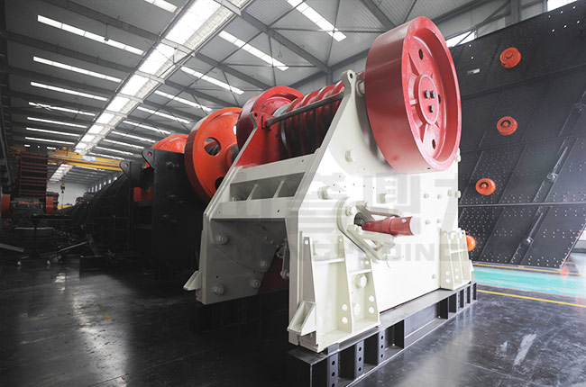 電動機驅動皮帶和皮帶輪,通過偏心軸使動顎上下運動,當動顎上升時肘板與動顎間夾角變大,從而推動動顎板向固定顎板接近,與其同時物料被壓碎或劈碎,達到破碎的目的;當動顎下行時,肘板與動顎夾角變小,動顎板在拉桿,彈簧的作用下,離開固定顎板,此時已破碎物料從破碎腔下口排出。