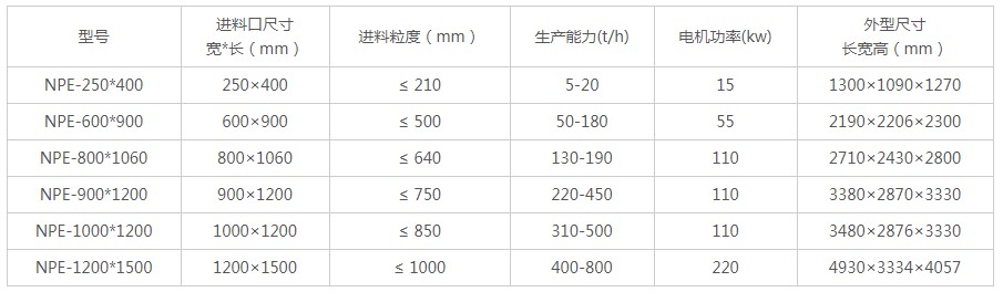 顎式破碎機型號技術(shù)規(guī)格