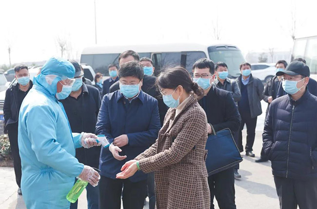 3月6日上午,河南省服務(wù)企業(yè)復(fù)工復(fù)產(chǎn)工作專班督導(dǎo)組成員:省發(fā)展改革委二級巡視員石新寬、省項目辦主任科員朱樂意、省運輸事業(yè)發(fā)展處長徐彩琴、省地方金融局調(diào)研員陳忠慶,在新鄉(xiāng)市人大常委會副主任職偉、新鄉(xiāng)市副秘書長李中耀、新鄉(xiāng)市發(fā)改委主任張文慧,以及市工信局、衛(wèi)健委、人社局、交通局、金融局分管負責(zé)導(dǎo)的陪同下,蒞臨中譽鼎力指導(dǎo)疫情防控及復(fù)工復(fù)產(chǎn)工作。