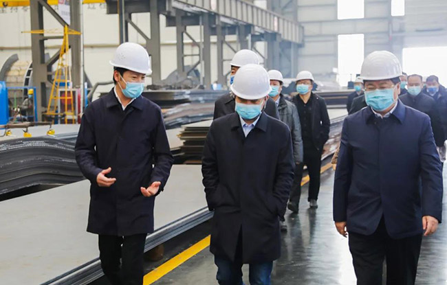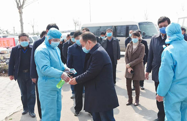 衛(wèi)輝市市長范士富、衛(wèi)輝市常務(wù)副市長李志勇、副市長董岐山等導(dǎo)程陪同指導(dǎo)調(diào)研。中譽鼎力董事長張治民詳細匯報了中譽鼎力的疫情防控工作和復(fù)工復(fù)產(chǎn)情況。