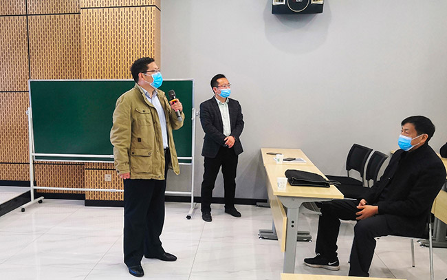 河南中譽(yù)鼎力智能裝備有限公司常務(wù)副總經(jīng)理張志宇、副總經(jīng)理崔玉清及新鄉(xiāng)市中譽(yù)鼎力軟件科技股份有限公司總經(jīng)理?xiàng)钋探哟,并介紹中譽(yù)鼎力各項(xiàng)情況。