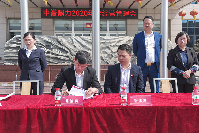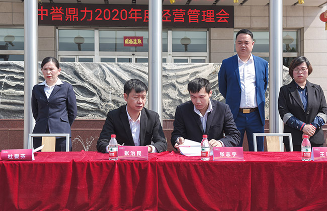 隨后,張治民董事長與公司各分管副總經(jīng)理、部門長簽訂2020年度目標責任書,并發(fā)表講話。