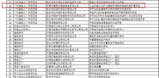 經(jīng)過(guò)為期7天的公開(kāi)公示,河南中譽(yù)鼎力智能裝備有限公司的“工業(yè)機(jī)器人及礦山智能環(huán)保破碎裝備制造擴(kuò)建項(xiàng)目”作為“機(jī)器換人”項(xiàng)目,順利獲得2021年河南省制造業(yè)高質(zhì)量發(fā)展專(zhuān)項(xiàng)資金支持!