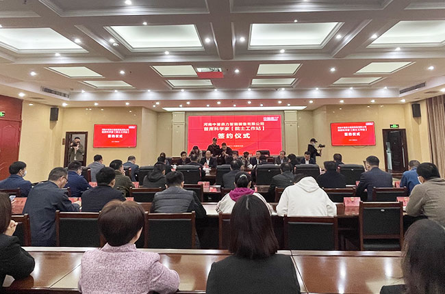 中工程院院士張鐵崗、河南中譽(yù)鼎力智能裝備有限公司董事長張治民、鄭洛新科技大市場總經(jīng)理路先鋒、鄭洛新科技大市場總經(jīng)理助理任潛隆、鄭洛新科技大市場綜合辦主任陳素英、河南中譽(yù)鼎力智能裝備有限公司總經(jīng)理?xiàng)钋爸凶u(yù)鼎力高層管理人員參加簽約儀式。