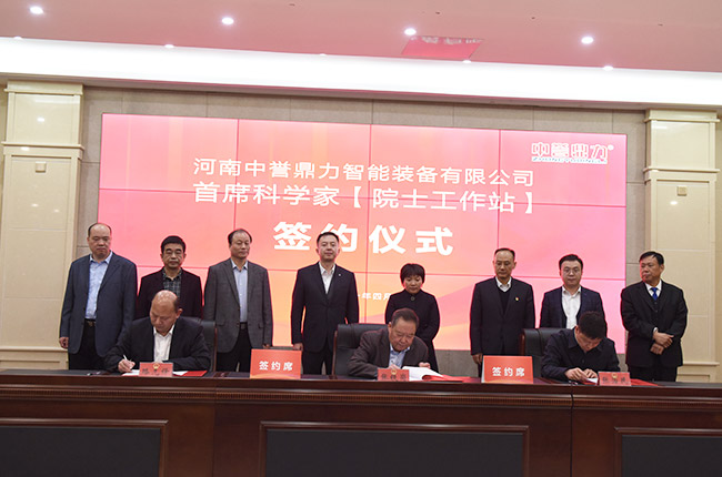 會上,張治民董事長代表中譽(yù)鼎力聘請中工程院院士、中礦業(yè)大學(xué)教授張鐵崗成為河南中譽(yù)鼎力智能裝備有限公司席科學(xué)家,后期將合作建設(shè)院士工作站。張鐵崗院士、張治民董事長和路先鋒總經(jīng)理就此進(jìn)行正式簽約。新鄉(xiāng)市、衛(wèi)輝市相關(guān)導(dǎo)及與會人員在現(xiàn)場共同見證這一隆重時(shí)刻。