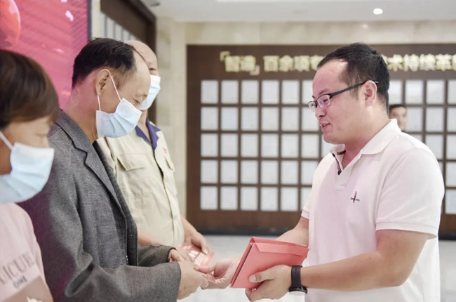 隨后,楊總和耿總為中譽(yù)鼎力智能裝備公司、事業(yè)部、事業(yè)部、藍(lán)天環(huán)保公司和遠(yuǎn)大集團(tuán)今年考上大學(xué)的19名員工子女或家長代表每人發(fā)放了3000元助學(xué)金,為大家送上企業(yè)的關(guān)愛與祝福。