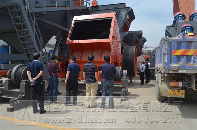 圖為天瑞水泥集團(tuán)相關(guān)人員在PCZ2125破碎機(jī)設(shè)備前駐足觀看