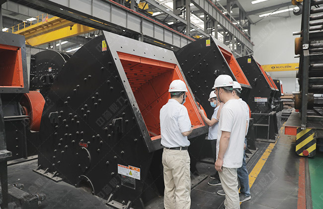 用戶參觀中譽(yù)鼎力pf1214反擊破碎機(jī)車間