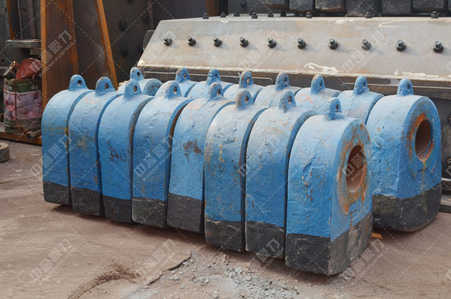 1)當(dāng)破碎物料的粒度較大時,錘頭所承受的沖擊載荷也較大,因此,應(yīng)選擇合金的高強高錳鋼,其韌性可安使用;