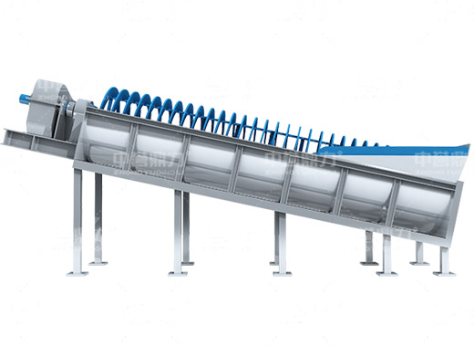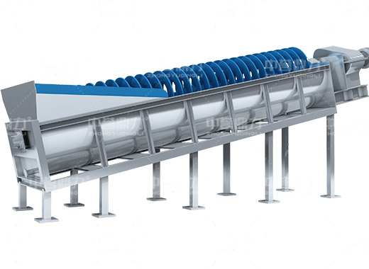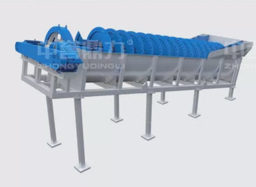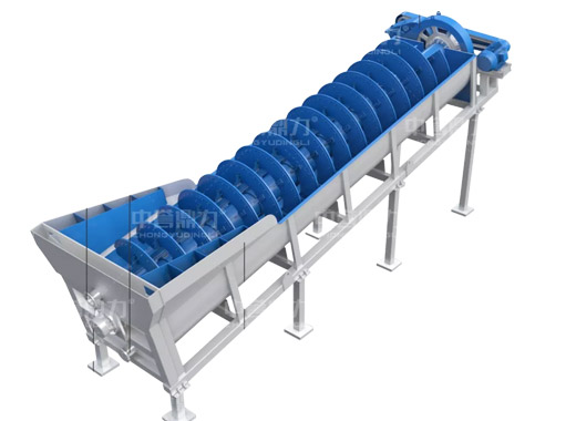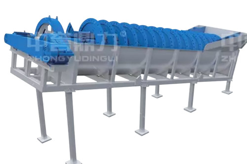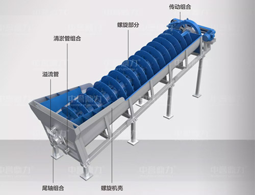 電動(dòng)機(jī)帶動(dòng)螺旋開(kāi)始轉(zhuǎn)動(dòng),砂石進(jìn)入到水洗槽中,在螺旋葉片的帶動(dòng)下翻轉(zhuǎn),砂石快速的與水?dāng)嚢枞诤,使物料中的泥土等雜質(zhì)與砂分離,清洗掉的雜質(zhì)隨著溢流管流出,清洗干凈的砂石在螺旋葉片的帶動(dòng)下,推到高出的出料口排出水洗槽,完成砂石清潔。