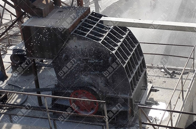 粗碎——原料經(jīng)振動(dòng)給料機(jī)均勻的送到重型錘式反擊破碎機(jī)PCZ1615進(jìn)行加工破碎
