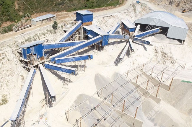 下圖為破碎后的物料進(jìn)行篩分,篩分出的成品物料分別送到料倉(cāng)中,不滿足要求的送回破碎機(jī)進(jìn)行再次破碎。