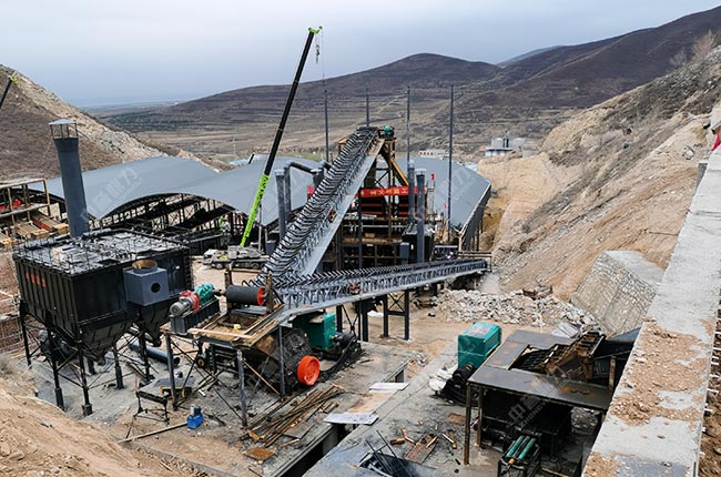 【設(shè)備配置】:采用中譽(yù)鼎力套礦山設(shè)備,如DLZGC2050振動(dòng)給料機(jī)、DLPCZ1820重型錘式反擊破碎機(jī)、DLPC1622整形式破碎機(jī)、DL3YKZ3070振動(dòng)篩、DLQMC脈沖袋式除塵器(11臺)等,以及中譽(yù)鼎力成套智能礦山管理系統(tǒng)和低壓配電管理系統(tǒng)