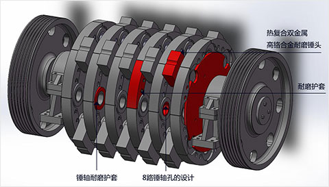 錘軸孔上設計護套、轉(zhuǎn)子盤上設計護圈,性高,無需每天更換,哪塊有損壞更換哪塊,增加了開機時間