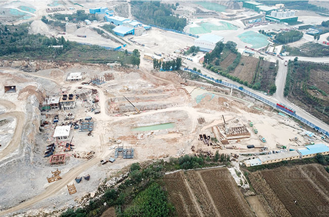 昌隆石料時(shí)產(chǎn)1500噸骨料生產(chǎn)線項(xiàng)目在建航拍圖