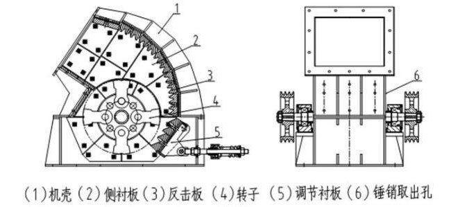 重型錘式碎石機(jī)內(nèi)部結(jié)構(gòu)見下圖
