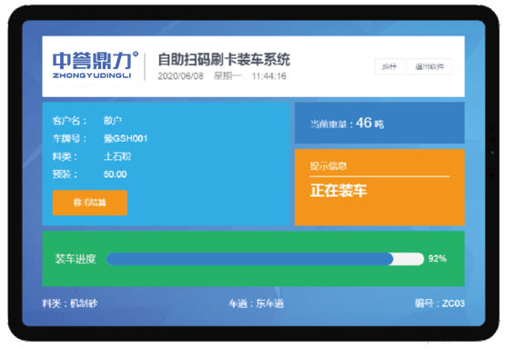 砂石料自動裝車系統(tǒng)通過刷卡或掃碼等方式,由系統(tǒng)讀取登記的預裝重量及預裝種類即可庫下自動裝車,防止偷料、換料等作弊行為,并且程多角度抓拍,以便事后追查。